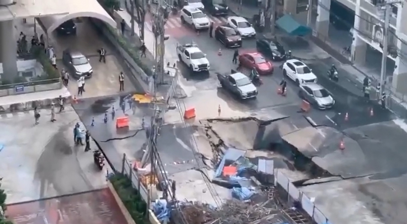 В Бангкоке засняли момент, когда люди пытались спастись от масштабного обрушения дороги.
