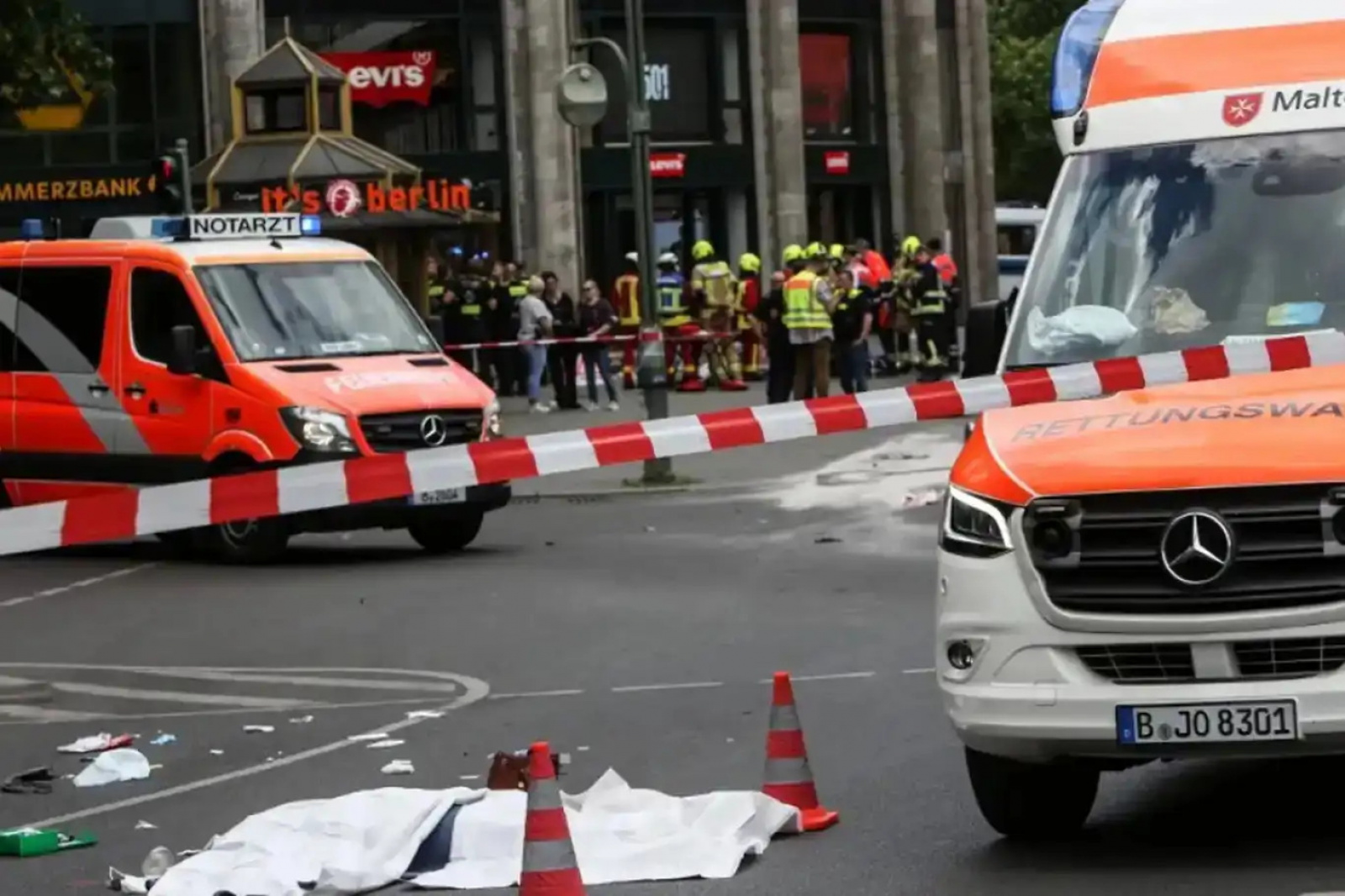 На кадрах с места событий видно водителя в окружении полицейских и служб экстренного реагирования. Представитель полиции Флориан Нат отметил, что место происшествия было тщательно осмотрено, и признаков теракта или преднамеренной опасной езды не обнаружено. По его словам, это обычное дорожно-транспортное происшествие, которые в Берлине случаются довольно часто. Большинство пострадавших получили лёгкие травмы.