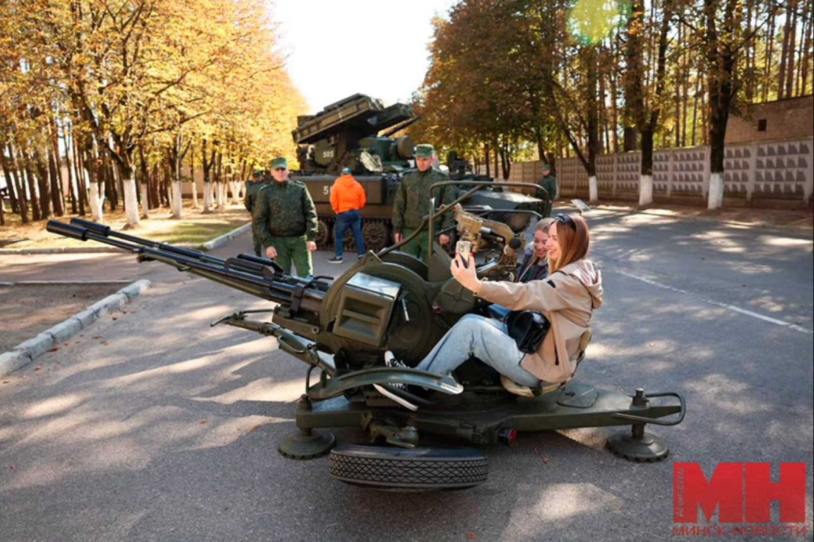 После регистрации и обеда участников разделили на взводы, которым была организована обзорная экскурсия по территории академии. Сначала блогерам продемонстрировали выставку военной техники: помимо наземных боевых машин, на площадке были представлены самолеты и вертолеты. Каждый мог подняться внутрь техники и почувствовать себя командиром.