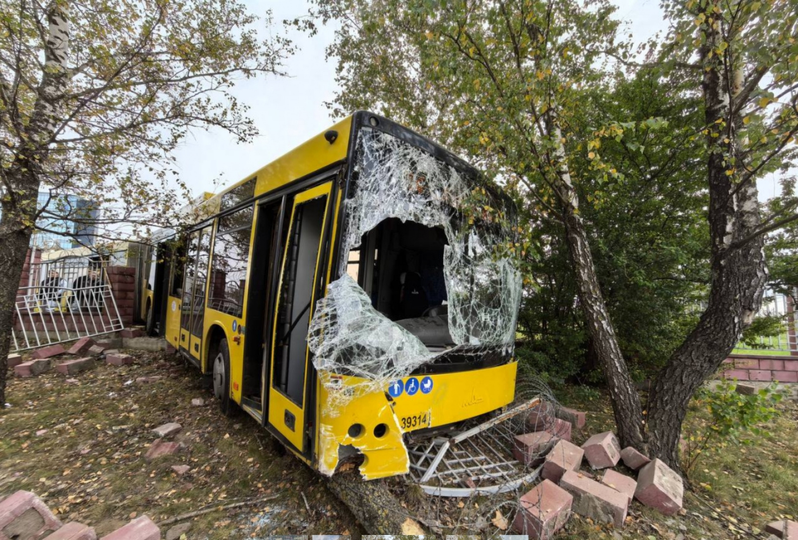 Он потерял управление и выехал за пределы проезжей части, где автобус столкнулся с бетонным забором.