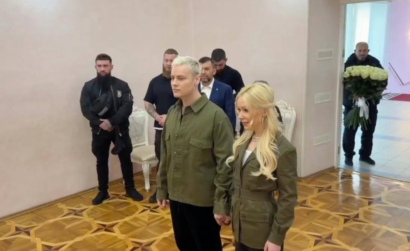 Поздравить молодожёнов лично пришёл глава ДНР Денис Пушилин, который пожелал супругам семейного счастья и взаимопонимания.