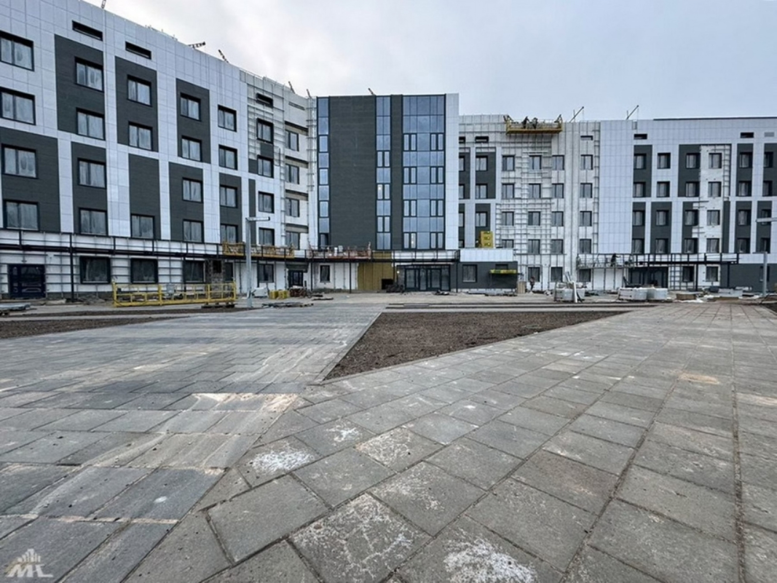 Новый медцентр возводят на свободном участке площадью 8,5 га. Строители уже завершили монтаж кровли, а на вентилируемом фасаде осталось доработать лишь несколько зон у главного входа. Частично выполнено благоустройство территории, установлено ограждение.